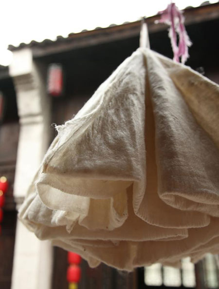 清水丝绵是余杭挺有的传统手工艺之一,却被归入国家级非物质文化遗产名列。清水丝绵的制作方式均为传统的手工操作,主要有选茧、煮茧、剥茧、开棉、晒晾、拉丝绵六个步骤。
