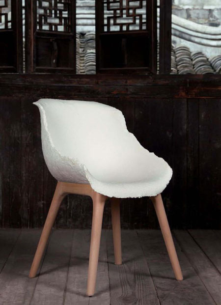 作为第二代宣纸椅子的设计,碟更进一步将纸的能力发挥到极致,本来柔软的宣纸,在特定的形态下呈现出超乎想象的承重能力。整个椅子的制造方式源于余杭的糊伞工艺。用柔性的纸取代钢性材质,这也是设计师向中国传统哲学的致敬。