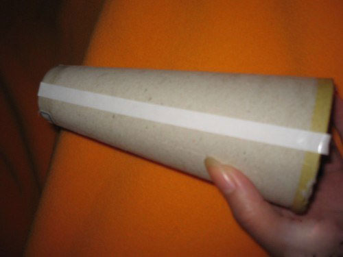 将麻花辫沿线轴绕啊绕啊 , 绕完一条用双面胶再接一条, 最后将辫尾粘在线轴内侧即可