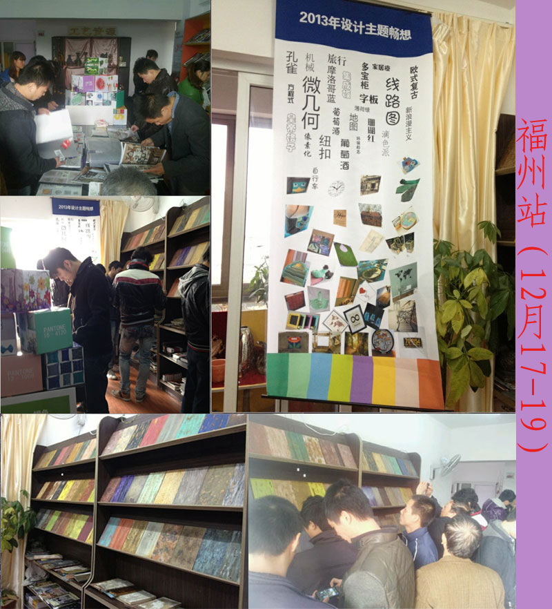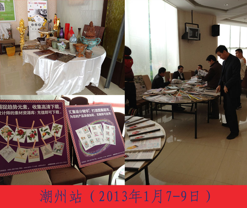 此次巡展各地亮点突出!我们的技术效果展比较受浙江仙居、福州地区的亲睐;高清素材花纸在德化、潮州则受到热捧;而我们的2013PANTONE、EFSA流行色引导更是得到各巡展区的认可;我们的潮流趋势书籍更是将此次全国巡展助推到一个新的高潮!纷至沓来的新老会员让我们感受到,作为工艺品行业整体开发设计服务商,我们又一次实现了企业价值!
