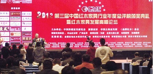 1月9日下午,由中国传统家具研究会、《品牌红木》杂志、新浪家居、中国古典家具网联袂打造的“2012中国红木家具行业年度总评榜颁奖典礼暨红木家具行业发展论坛”系列活动在广东省中山市喜来登酒店盛大举行。据悉,本次活动得到了社会各界及红木家具行业的高度关注,现场来自国内红木家具行业的专家、企业、相关红木家具协会、经销商、供应商、消费者等嘉宾近千人以及几十家新闻媒体出席了此次论坛。
