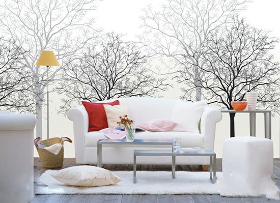 白色的沙发搭配根根分明的树枝,使这个客厅具有了冬天的味道。这个空间也显得十分干净清爽,十分适合用于夏天的装饰,给人带来一种清凉之感。