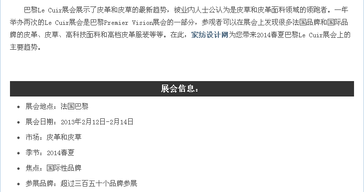 2014春夏巴黎Le Cuir展会--皮革&皮草