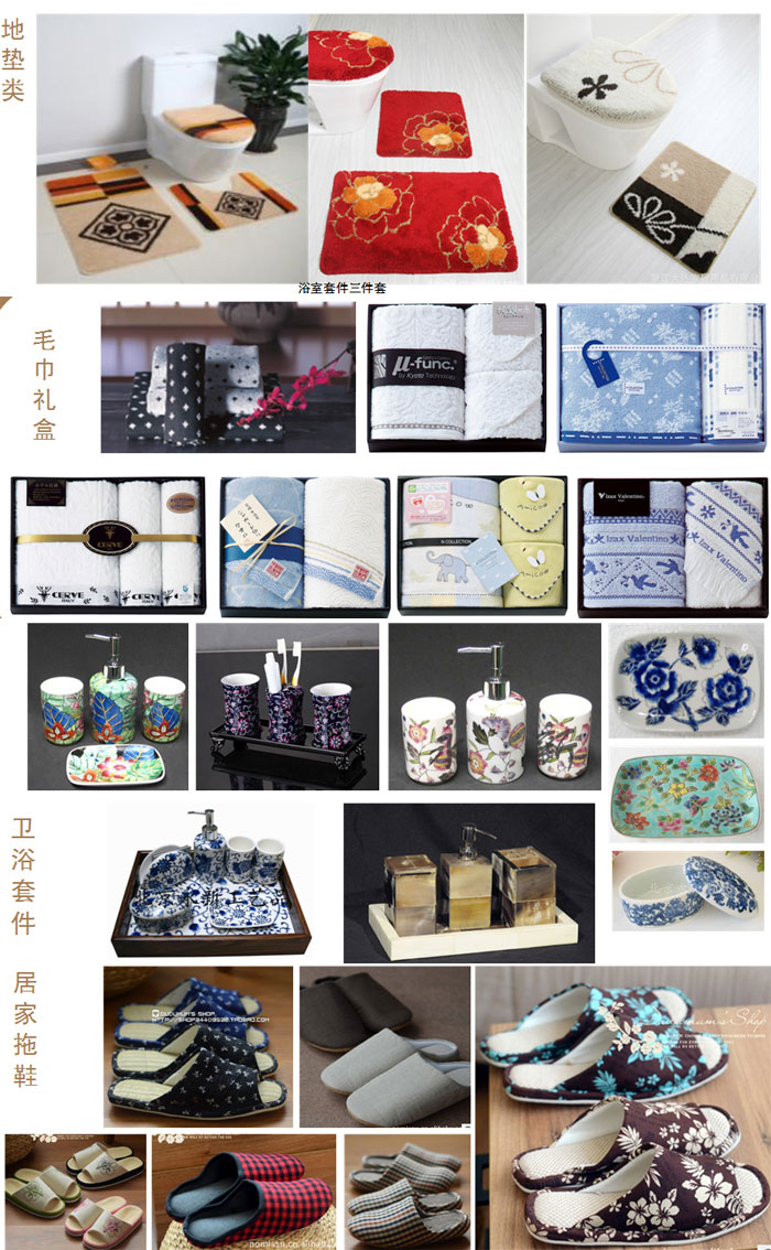 公司主要经营客餐用品、卫浴用品、卧房寝具、居家摆设、家具收纳、生活家电、居家清洁、进口食品、原创礼品等具有“中国文化印象元素”的家居产品。随着该公司战略品牌规划及后期门店开发需求整合。现欲采购以上商品,欢迎相关产品厂家与我司洽谈合作。(产品图片附图如下方)