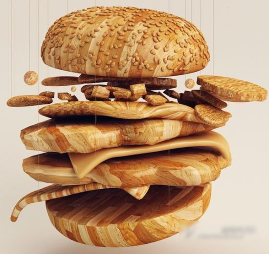 Antoni Tudisco 在这组以“假”乱真的数字 3D 木雕中,把起司汉堡、球鞋、甜甜圈、海绵宝宝等大家生活中常见的事物进行 3D 木雕变形。通过这些 3D 木雕上清晰可见的木头纹理、木质材料形状以及悬挂样式的陈列方式,让它们极具真实性。当事实上,它们是摸不到的 3D 木雕。据悉,这位艺术家不愿对他的制作过程做过多的细节透露,只是表示,每一个 3D 木雕耗费他 30 分钟到 2 周不等的时间完成。
