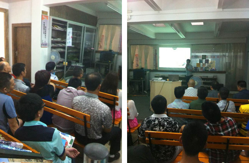 上午9点整,理论课培训准时在公司总部开讲。讲师系我司VIP客户经理-杨桂榕先生。培训会现场座无虚席,井然有序。杨经理将趋势设计与技术效果相结合,从理论引导到实际案例的分析,并将我司独创的“产品设计策划工具”的使用方法进行深入分析。杨经理还将他在6月份参加的杭州“店面与展位陈设特训课”上学到的内容进行分享。精彩无限,掌声不断!
