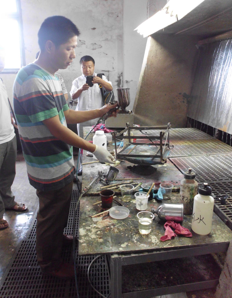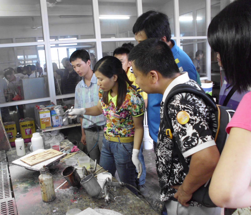 某VIP会员亲自动手操作,将效果做在自己的产品上,并由我司技术员从旁辅助指导: