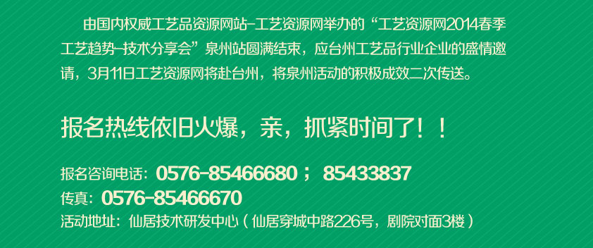 工艺资源网2014春季工艺品趋势•技术分享亲,别错过了报名!!!