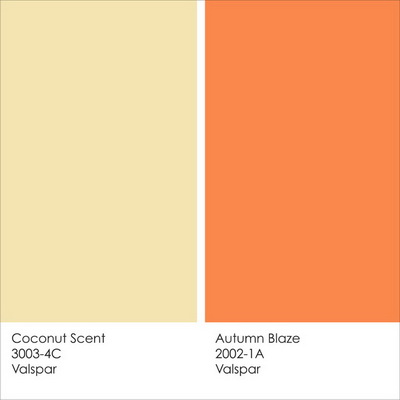 色板例子:椰子风味和秋天火焰。Valspar 出品。