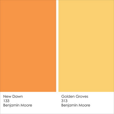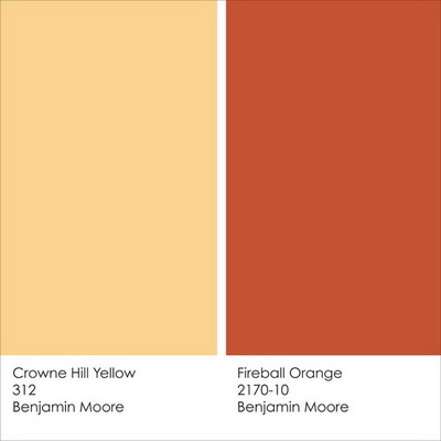 色板例子: 皇冠山黄色和火球橙。Benjamin Moore 出品。
