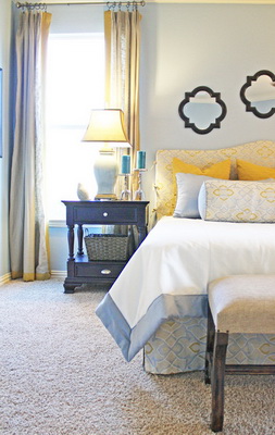 黄色与蓝色。 就像盐和胡椒、面包和果酱,这些色调就是完美的一对。要找到两个合作无间的颜色还是挺困难的——作为原色,他们共同拥有一种不太复杂的、很初级的品质,所以可以保持同步。大多数的人认为黄色和蓝色但是只要整齐的运用、加入微妙的图案,就可以把他们变成过渡甚至现代风的色彩,如图所示。