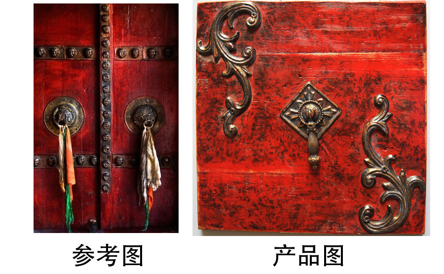 2、该图注重的是暗红色的做旧表现,配以带铜绿锈的古铜配件,整个产品显得有年代感。古铜表现出的金属质感,能够提升产品的厚重感和档次。