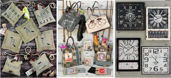 a、翻开书,首先入眼的是浓郁的复古风的家居类产品,对于这个系列我们能提炼的关键字有:复古、怀旧、自行车、帆布、灰色、人物头像、回收概念、工业时代,这些都是我们看得到并且感受得到的,这与HOFF以往的精致风情交相呼应。