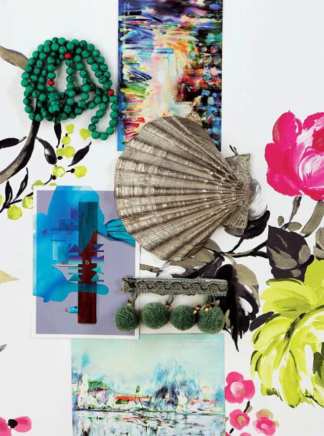 家具饰品选择抽象写意的图案和中式风格,更能渲染出水墨晕染质感,再与荷叶的壁纸共同烘托出东方意蕴。