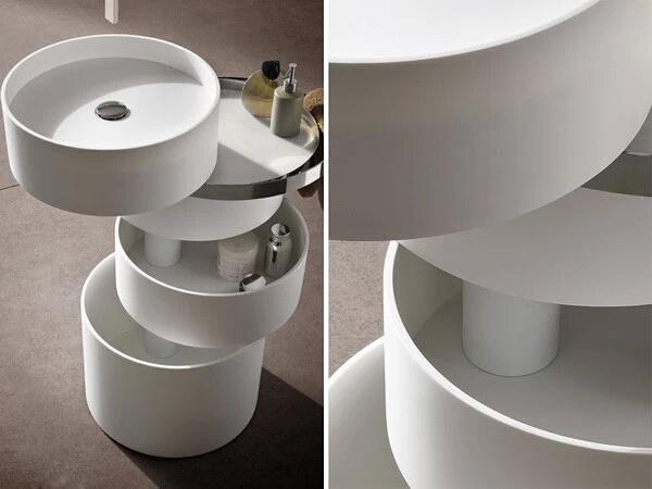 NO.2简约洗手盆,将一个圆柱体进行了切割增添了置物功能。