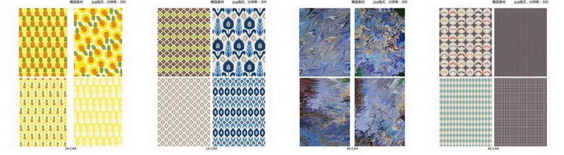 一般素材更新了趋势素材。内容有箭矢、蕾丝、动物纹、动物皮、渲染、木纹、海洋、水影画、菠萝、仙人掌、小胡子、佩斯利、青花色、阔叶、格子、叶脉纹理、女性、万圣节、圣诞节。格式为jpg分辨率400.
