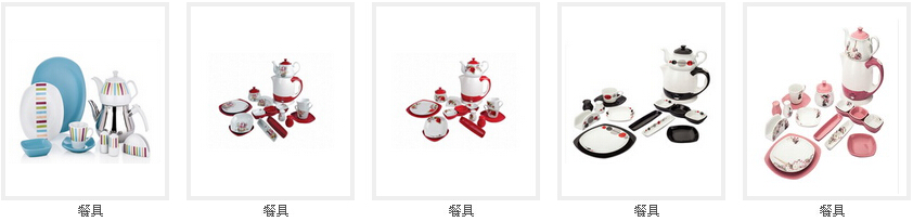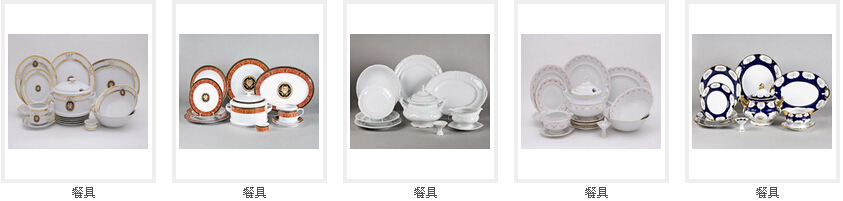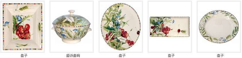 以餐具套装表现为主,产品有盘子、沙拉盘、汤碗、盛汤盖碗、调味瓶、餐巾架等。
