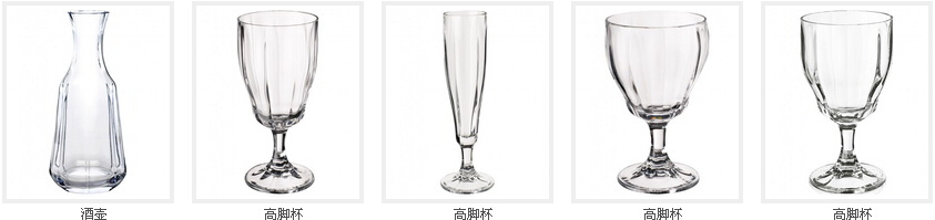 玻璃制品:酒具、高脚杯、玻璃杯、酒壶、酒瓶