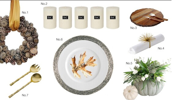比如松果花环上彩带的悬挂,五号南瓜花瓶的柔和色调。