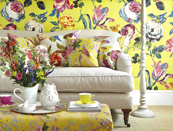 每天都希望有花开一样灿烂的心情,那就用亮色花卉来增加家的活力吧!漂亮的壁纸结合传统蓬乱的花卉,现代、先日的色调——热粉、阳光黄。