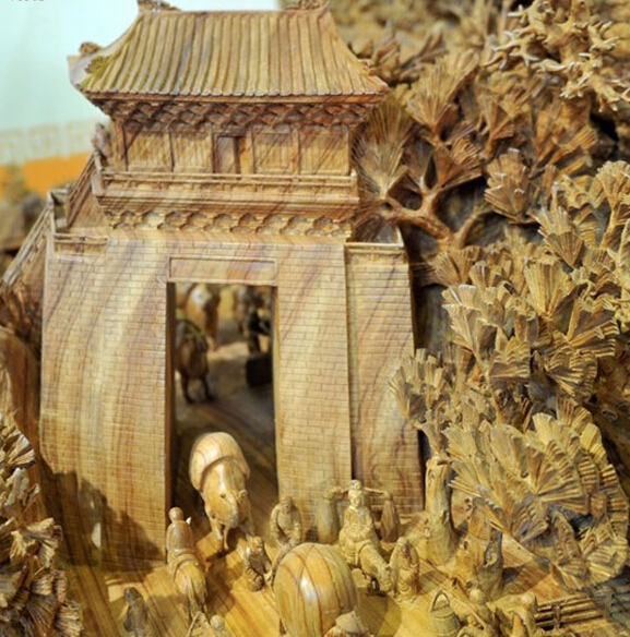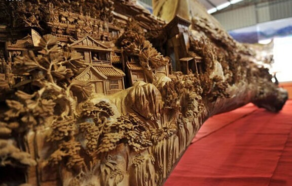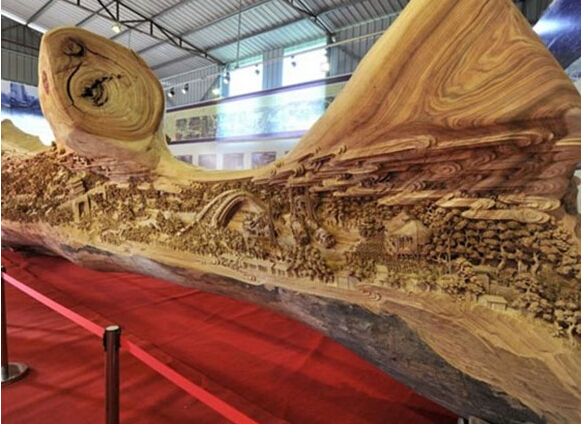 这是来自中国艺术家郑春晖的作品,创造了新的吉尼斯世界记录,世界上最长的木雕,12.286米长、3.075米高、2.401米宽。