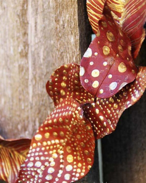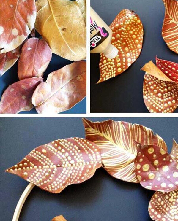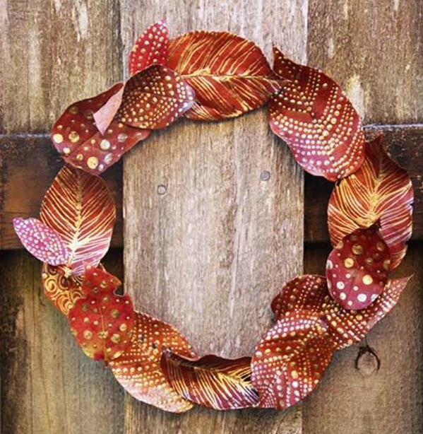 我们可以做一个应景的DIY,捡一些红色的秋叶,再叶面上用金色的颜料作画,最后再做成一个漂亮的花环,这样的DIY实在很惬意很有情调呢~
