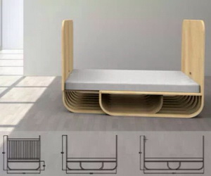 Zhi Qi Qiu 和 Surong Sun 设计的这款成长型婴儿床Growth Crib引进可持续的设计理念,可以根据身高和体重调整床铺的长度。