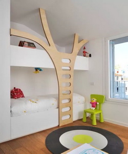 AKSL建筑公司设计的一款双层床,设计师把双层床的扶梯设计成了一棵树。