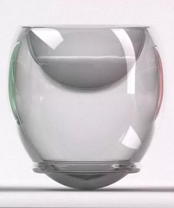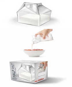 Liz Dubois-FRED工作室设计的这款[半品脱]的牛奶杯像是一个已经打开的牛奶盒,材料为玻璃,采用吹制和塑模两种工艺制成。