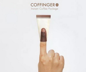 每次冲完咖啡都发现没带勺子,甚是烦恼,设计师Jaeyong Lee在咖啡袋COFFINGER包装尾部预留了一个手指的空挡,倒出咖啡后,用食指将包装翻过去,用咖啡袋内侧搅拌咖啡。