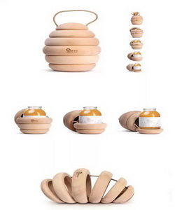 亚美尼亚的Backbone工作室对蜂窝进行了仿生,设计出了这个用来装蜂蜜罐的蜂窝包装盒。由粗麻绳贯穿6个木质而成,为产品营造出一种天然,原生态和口感醇正的形象。