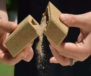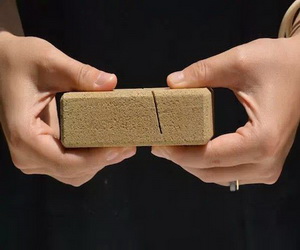 巴塞罗那的【外星人和猴子(alien and mokey)】工作室设计了一款沙子礼品盒,外面用沙子做成,沙子还可以当做防震填充物。把盒子敲开,敲碎后的包装盒可以变成沙子。