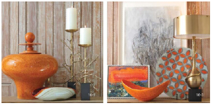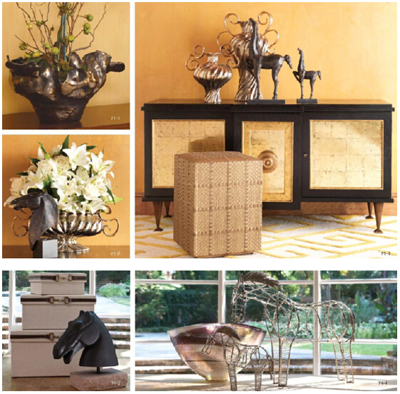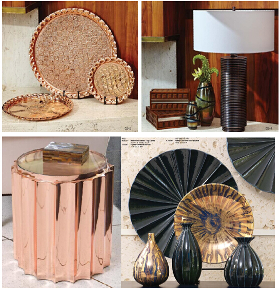 使用皮革面料、布艺、陶瓷、玻璃、金属材质。