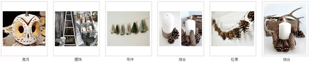 5、圣诞节,产品包括松果烛台、南瓜猫头鹰、挂袜、橡子吊件、餐巾扣等。