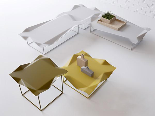 设计师 Dmitry Kozinenko 设计的下面款桌子叫做 Windy,名字很形象,桌面是折叠状,既像是折纸出来的样式,又比较像是风吹皱了桌子。看起来十分有趣,加上亮丽的糖果色,或者简单大方的纯白色,也算是家里一道比较有意思的风景线了。当然这种平面不但可以做桌面,还可以作为置物架的隔板,在置物架上面放一些小的花卉盆栽或者是一些书籍、小物件都是不错的选择,看起来独具匠心,很有艺术范的感觉。