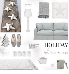 白色圣诞。白色底色的精美纯白的圣诞季装饰,搭配自然色彩的搭配,白色烛台,灰色沙发,银色圣诞树摆饰,等等,整体呈现风格朴素。
