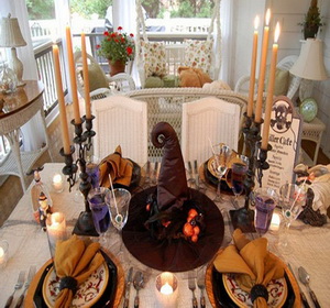 3、万圣节的餐桌装饰。