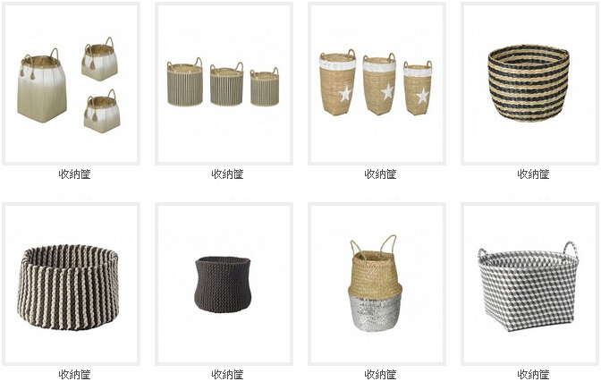 3、日用功能,主要有收纳篮|筐、温度计、挂钩、收纳罐。材质包括有五金、铁件、木制品、编织品、竹藤制品。