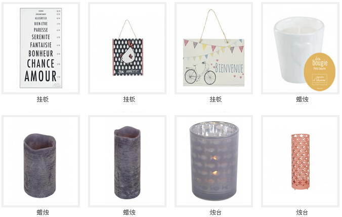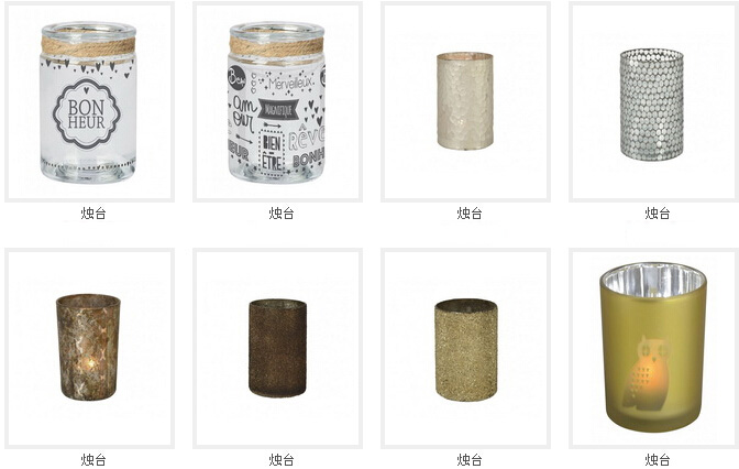 4、家饰,包括有蜡烛、玻璃烛台、铁件烛台、木制挂板。