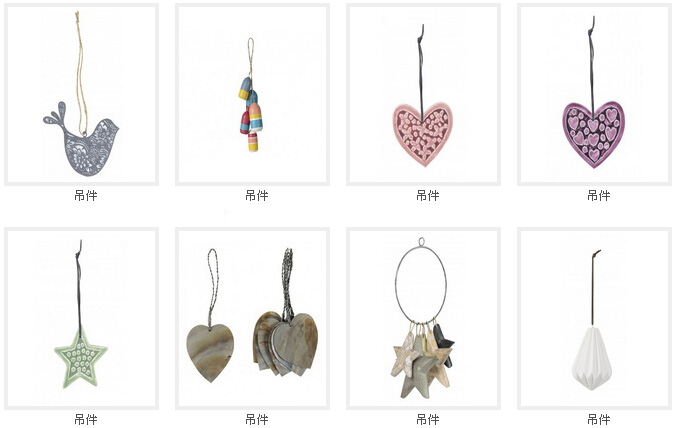 7、吊件,材质包括有陶瓷、五金、木制品、树脂、布制品。